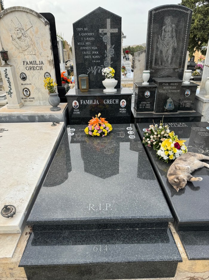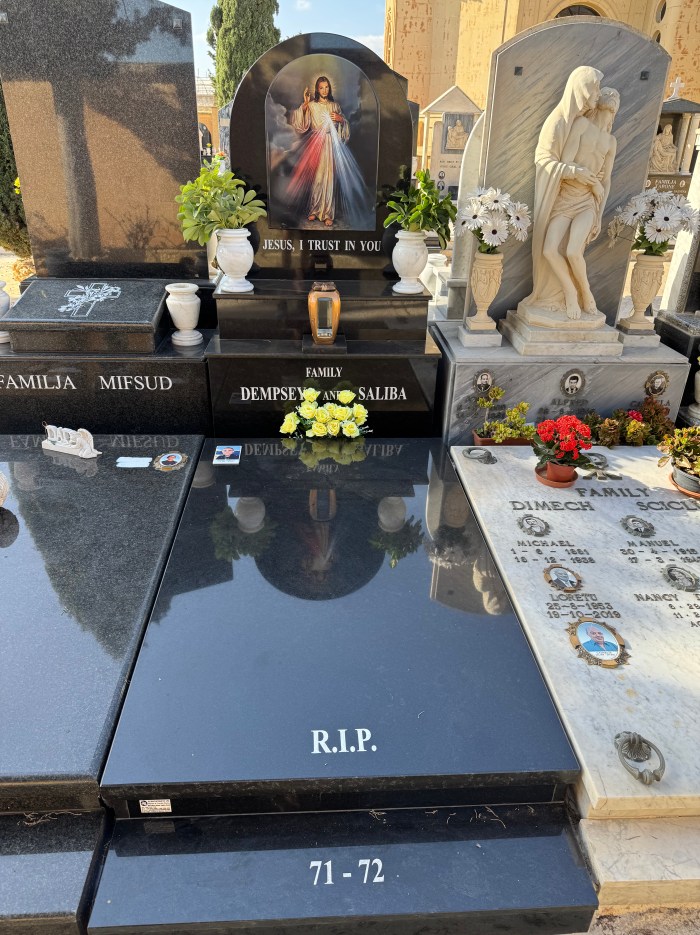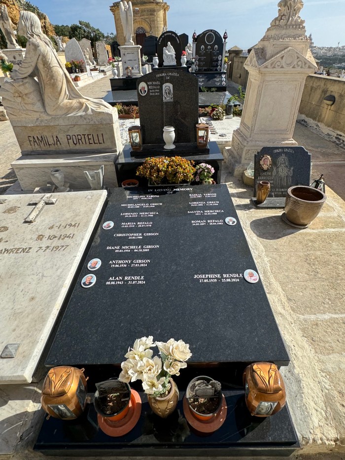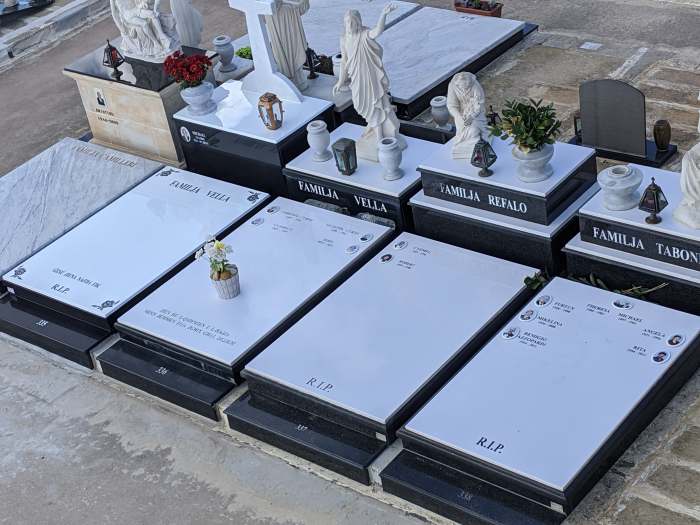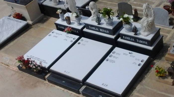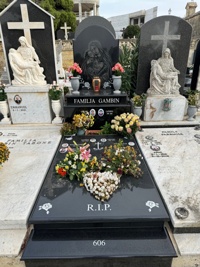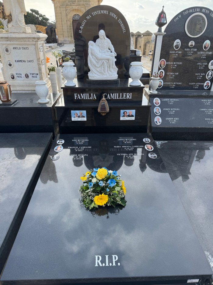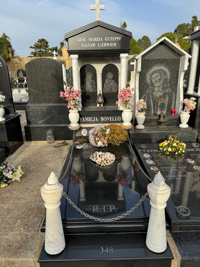 Cemetry Memorial in Nero Assoluto Granite with Photo Ceramic (San Gorg Preca, Madonna Ta’ Pinu, San Pietru Pawl u Padre Pio)
