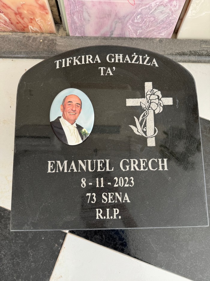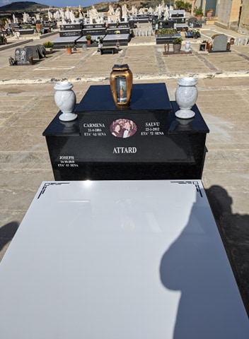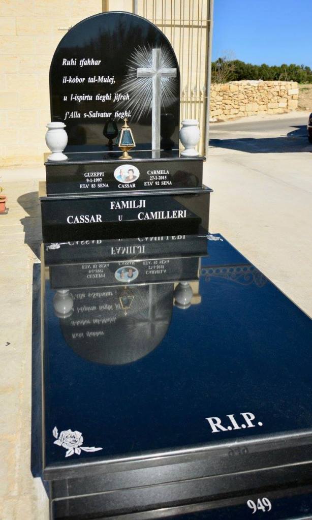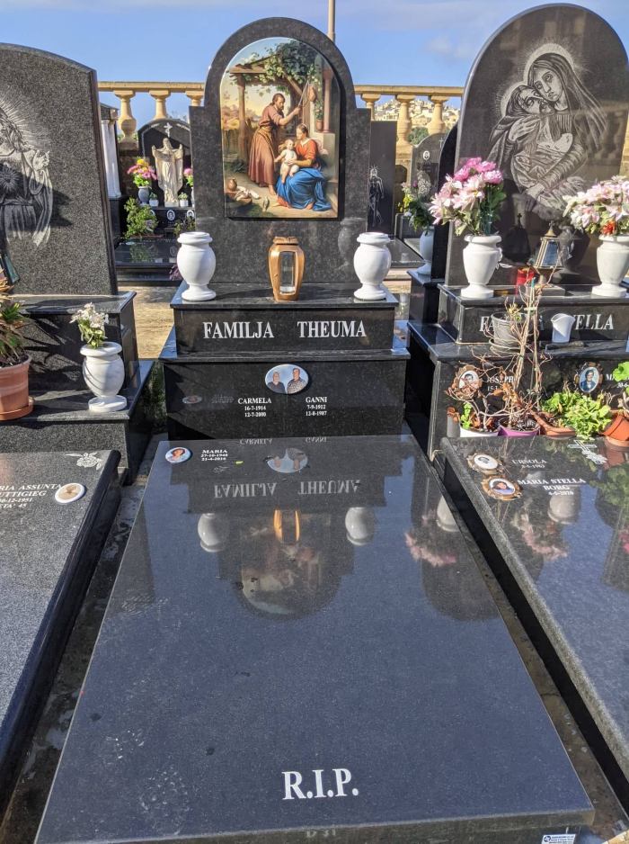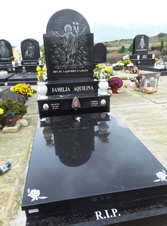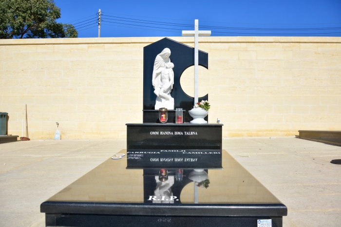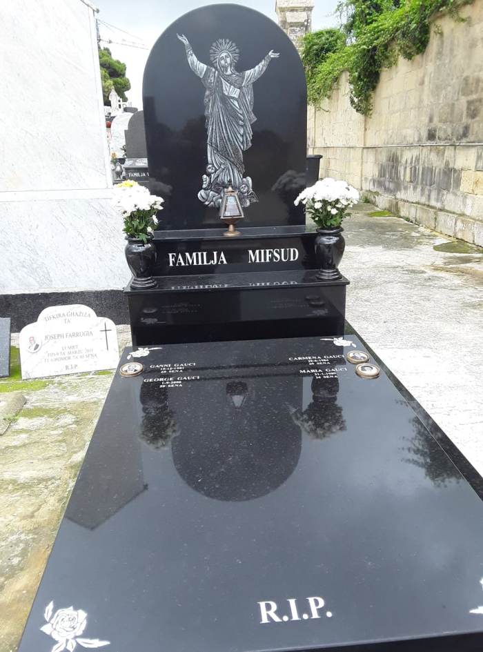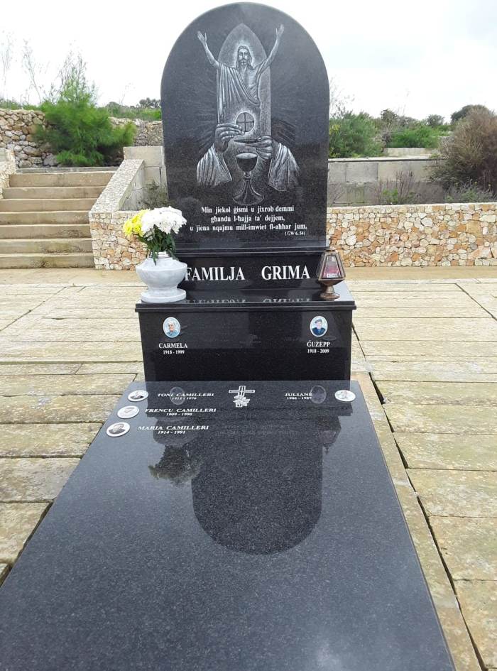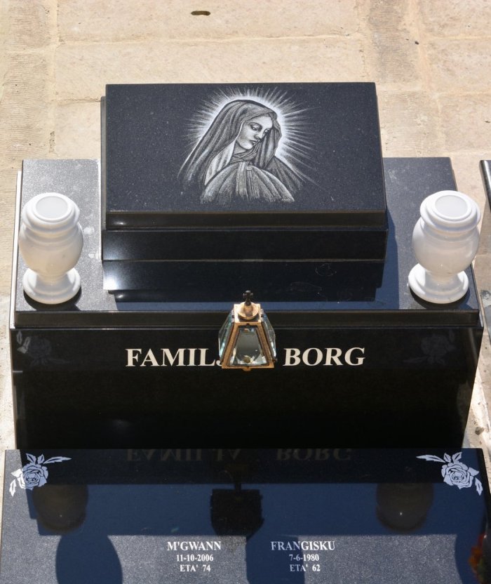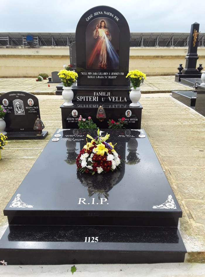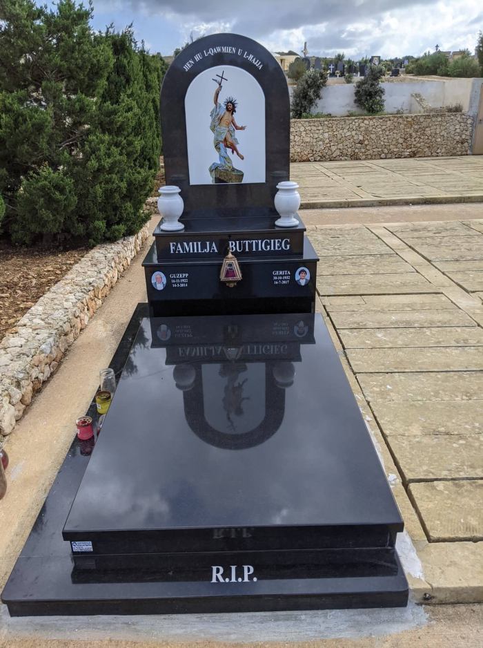 Cemetry Memorial in Nero Africa Granite with Photo Ceramic (Madonna Tal- Karmnu)