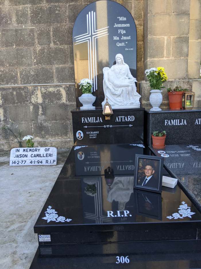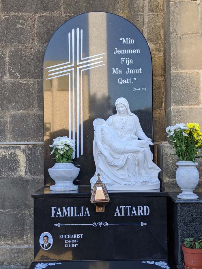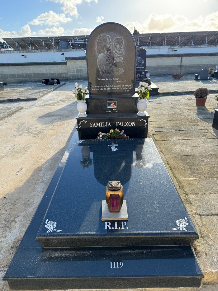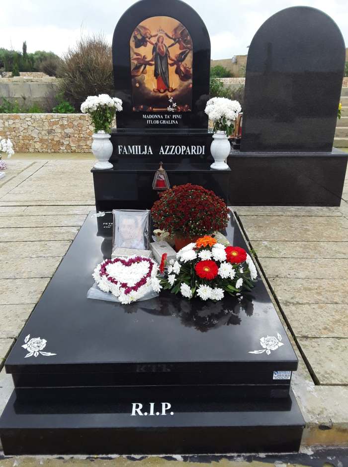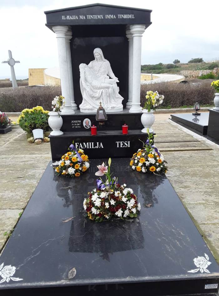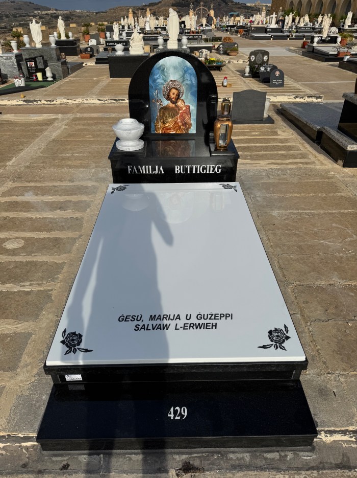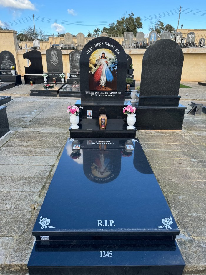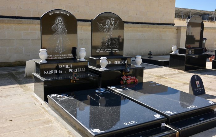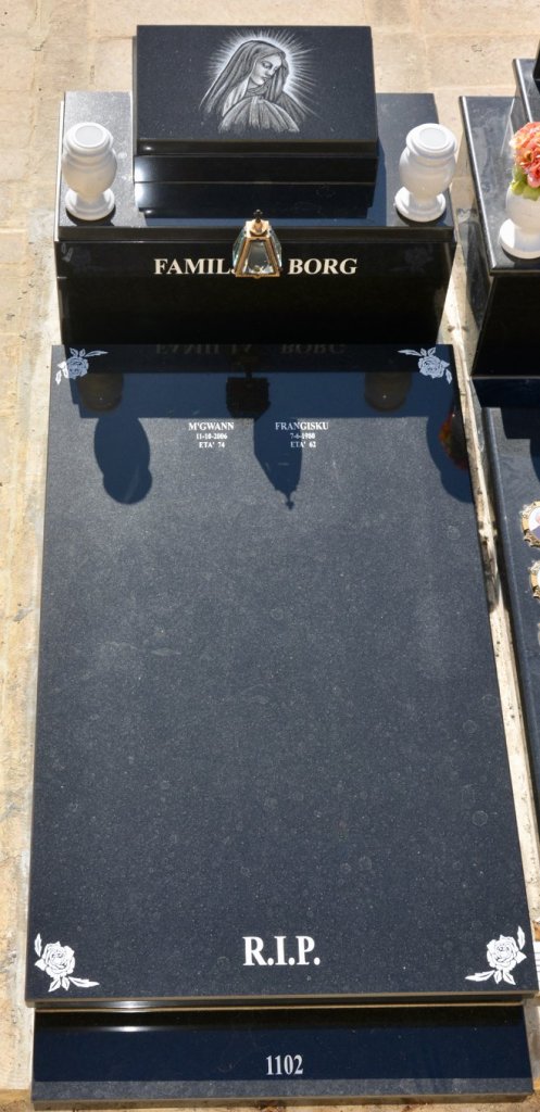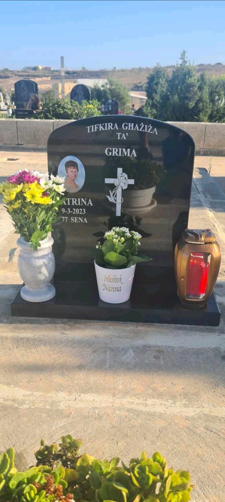 Cemetry Memorial in Nero Africa Granite with Photo Ceramic (Madonna Tal- Karmnu)
