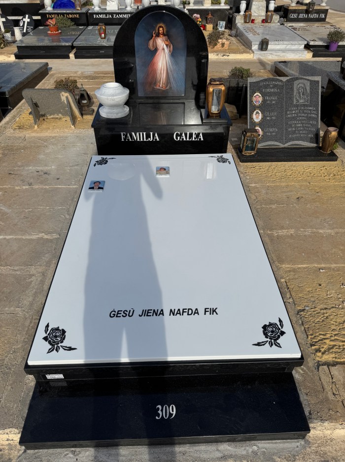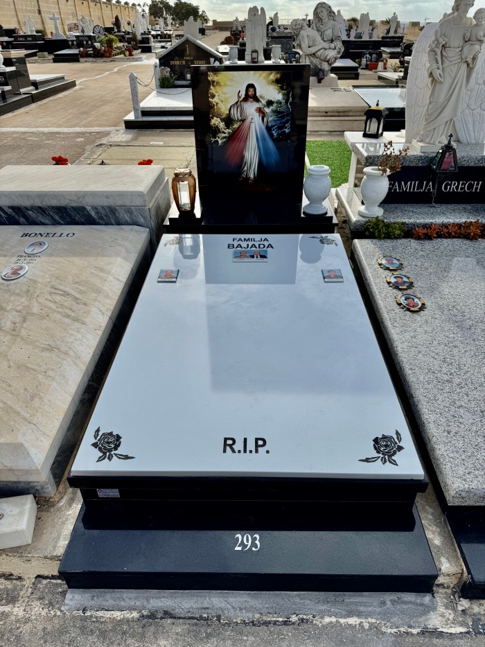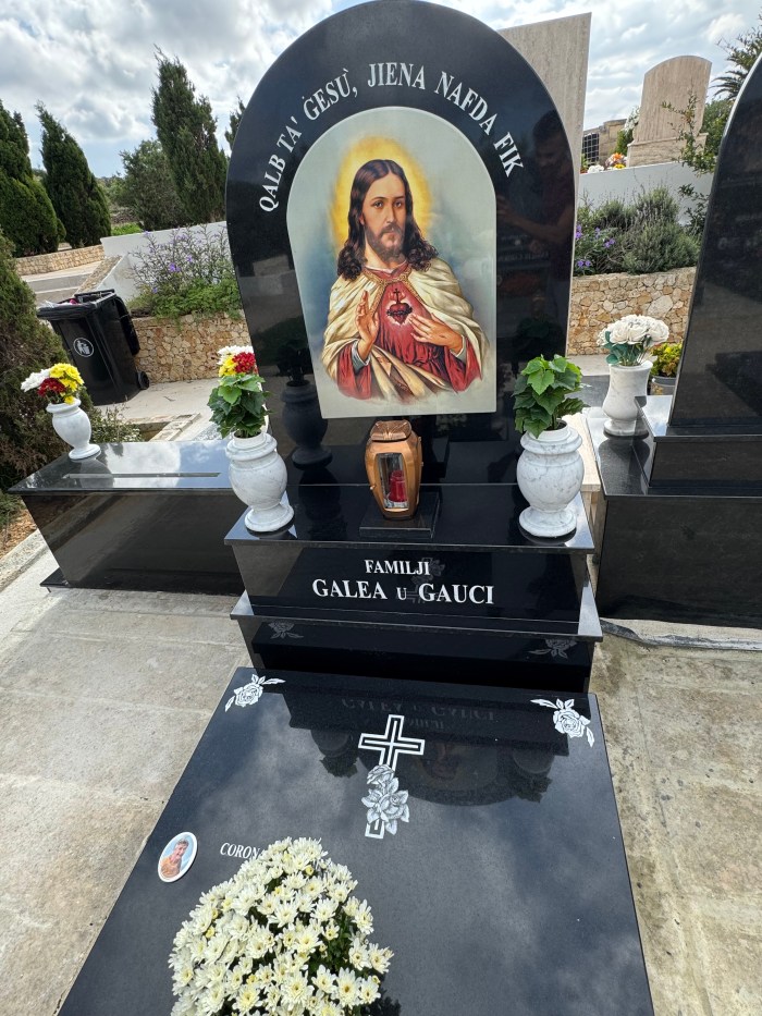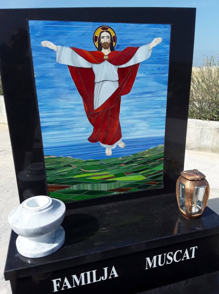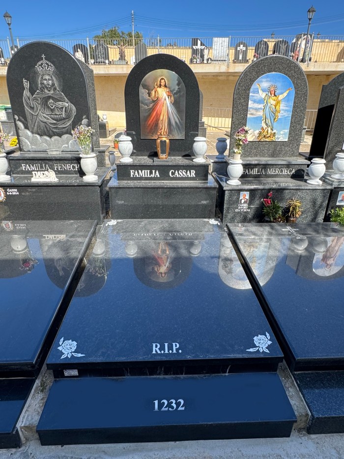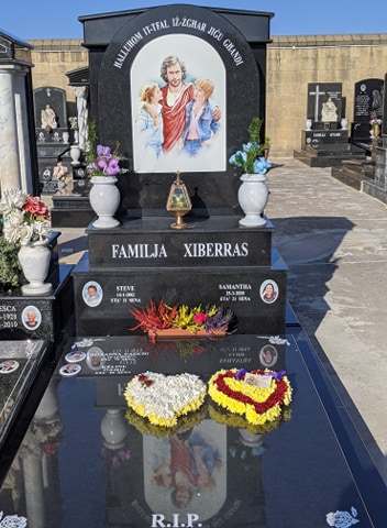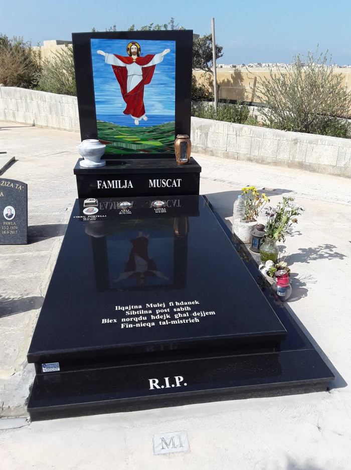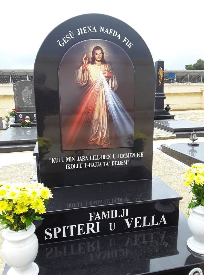 Cemetry Memorial in Nero Assoluto Granite with Photo Ceramic (Qalb Ta’ Gesu)