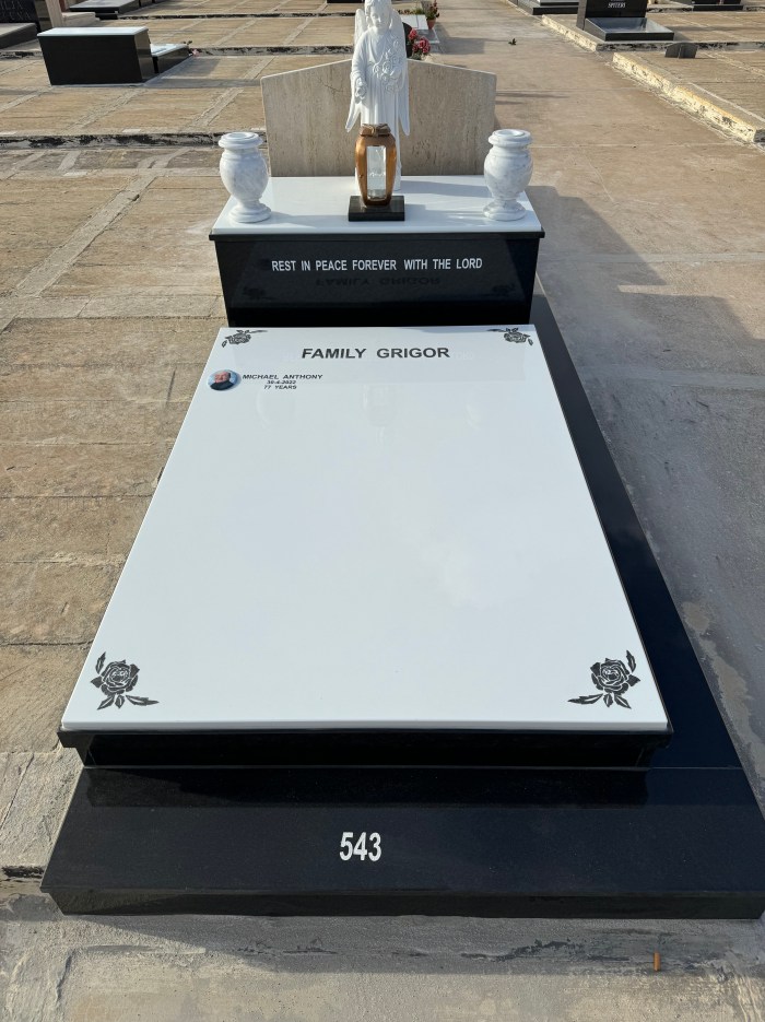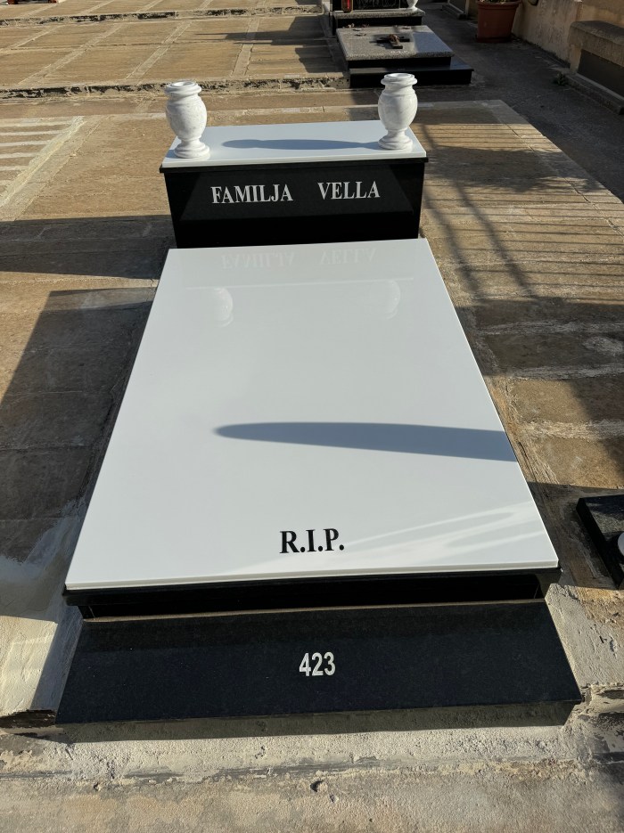 Cemetry Memorial in Nero Assoluto Granite with White Ceramic Top