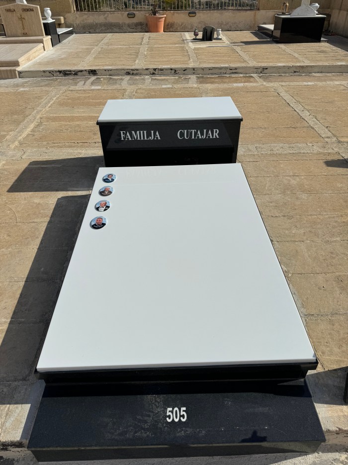Cemetry Memorial in Nero Assoluto Granite with Photo Ceramic (Santa Marija) & White Ceramic Top