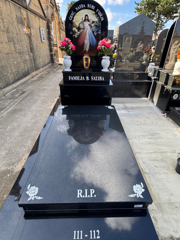 Cemetry Memorial in Nero Assoluto Granite with Photo Ceramic (Qalb ta Gesu)