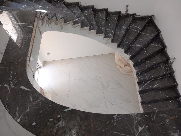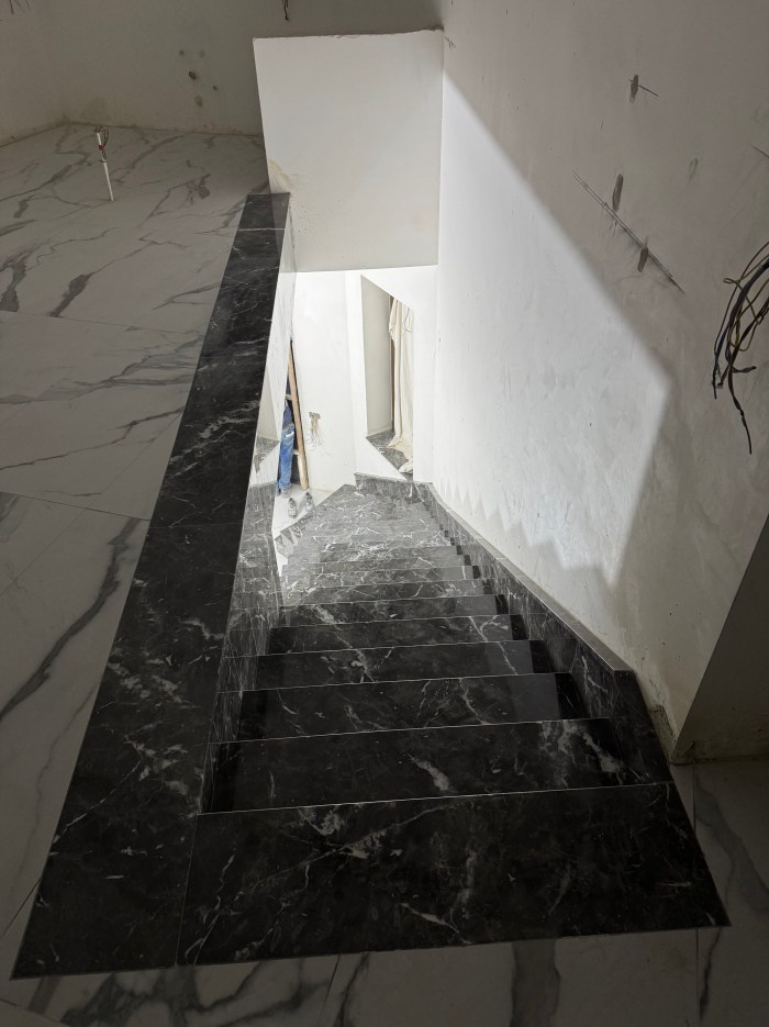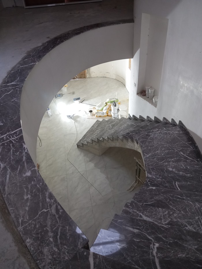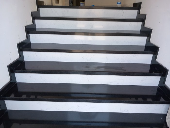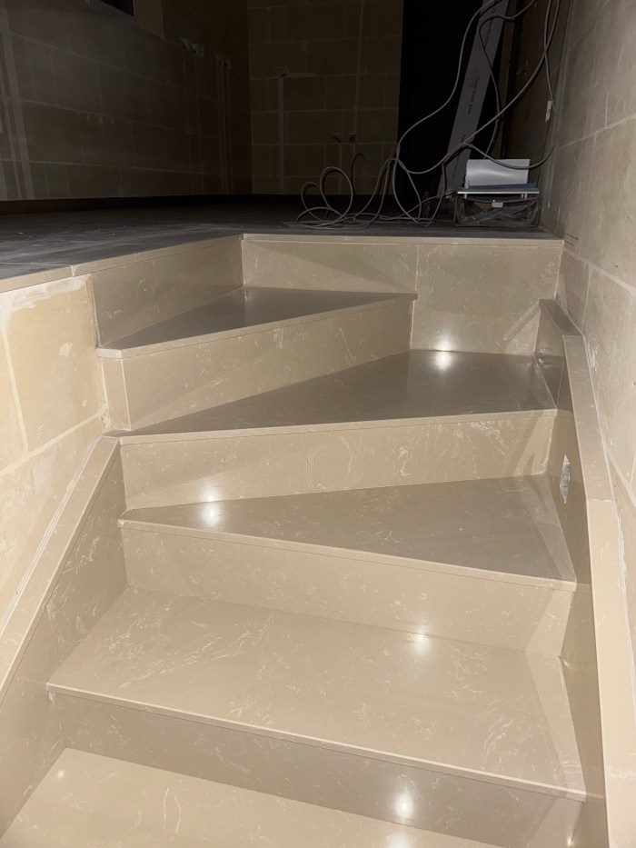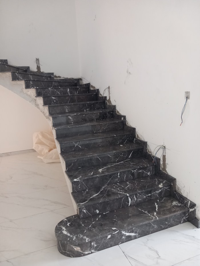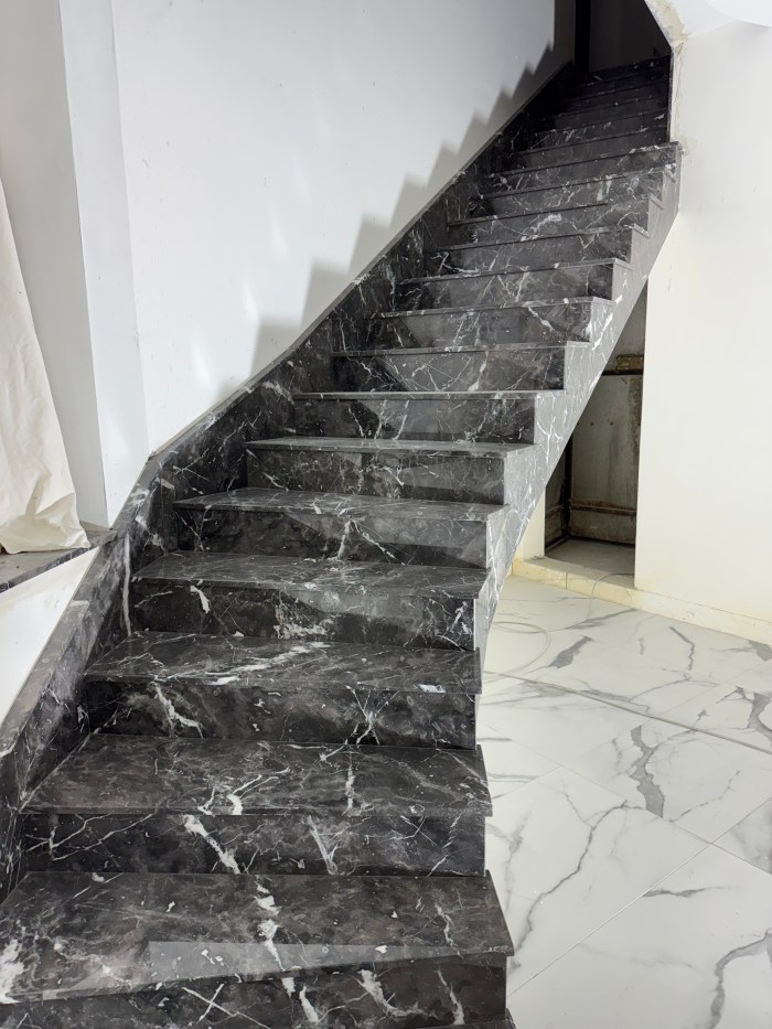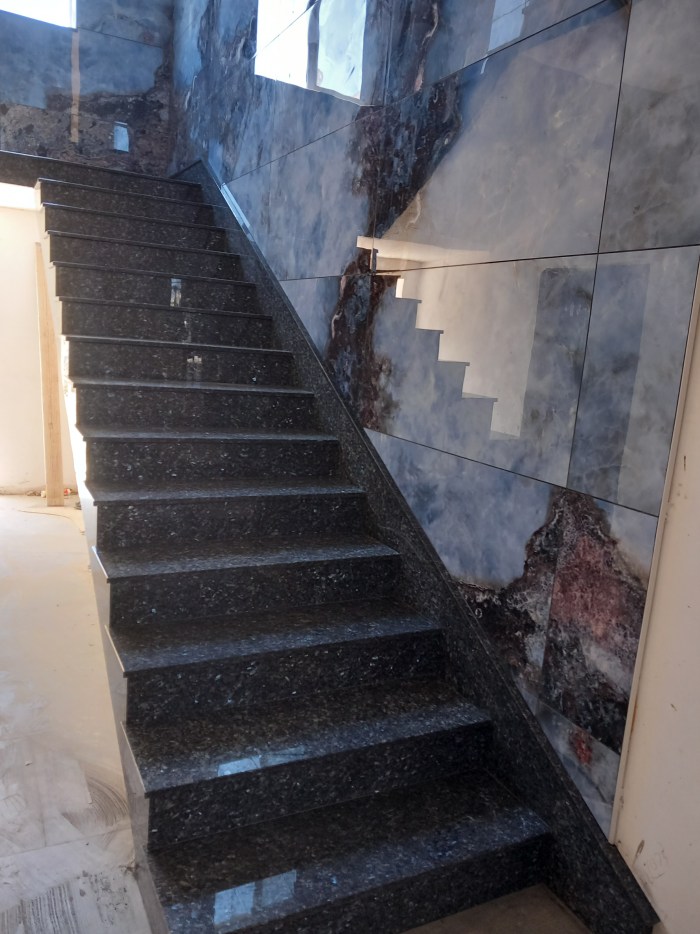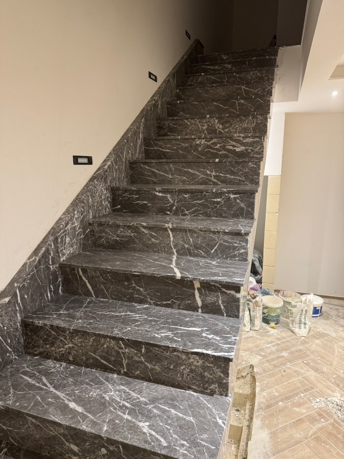 Staircase in Nero Assoluto Granite, Rizers in Super Ariston Synthetic Marble