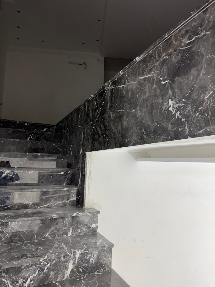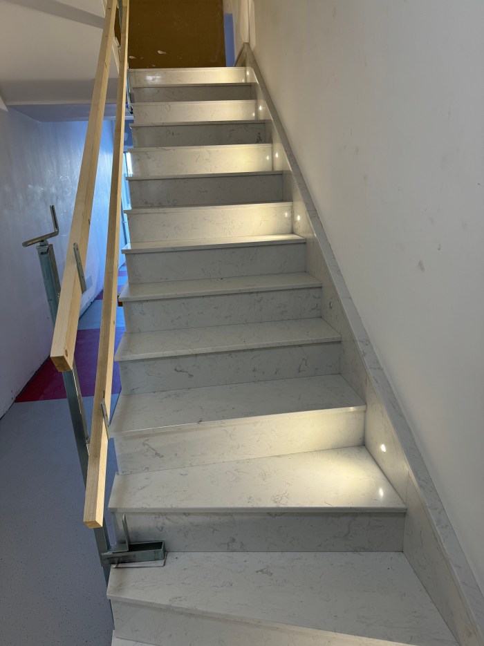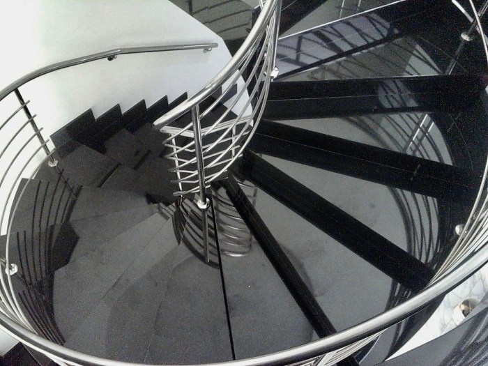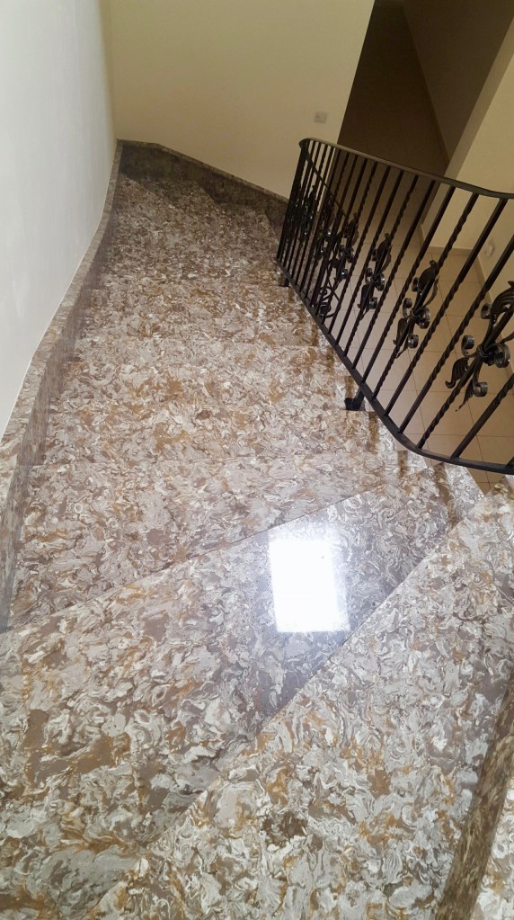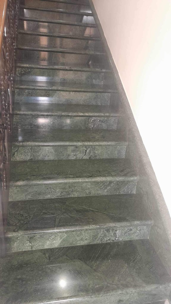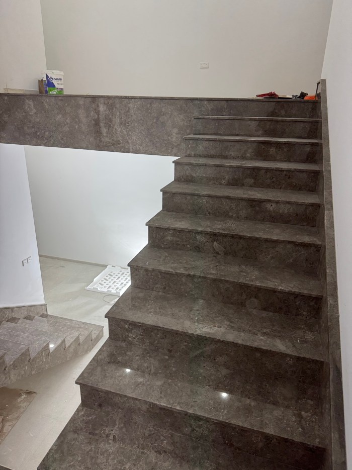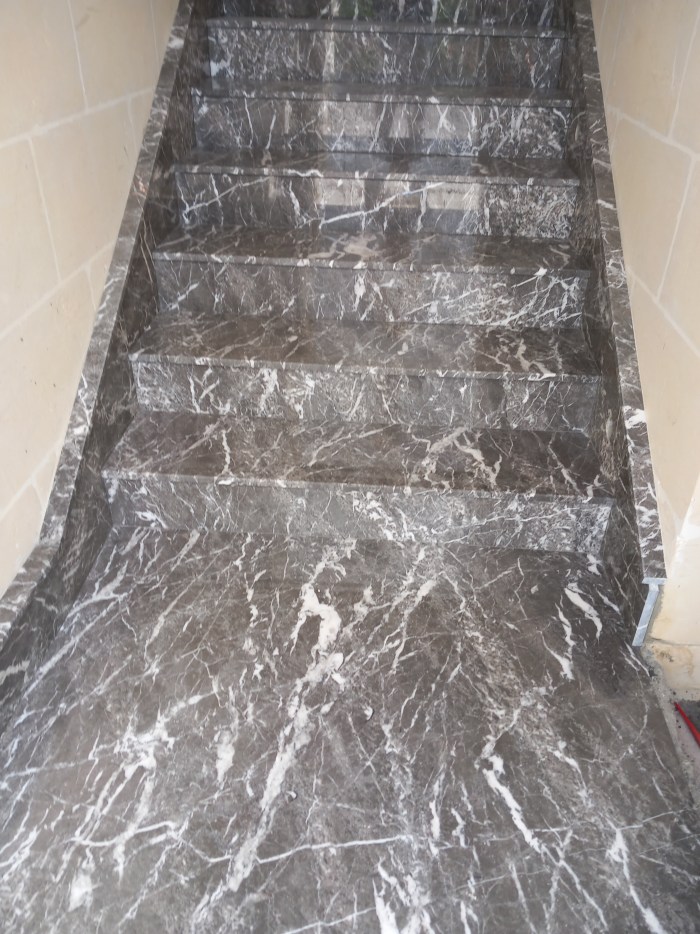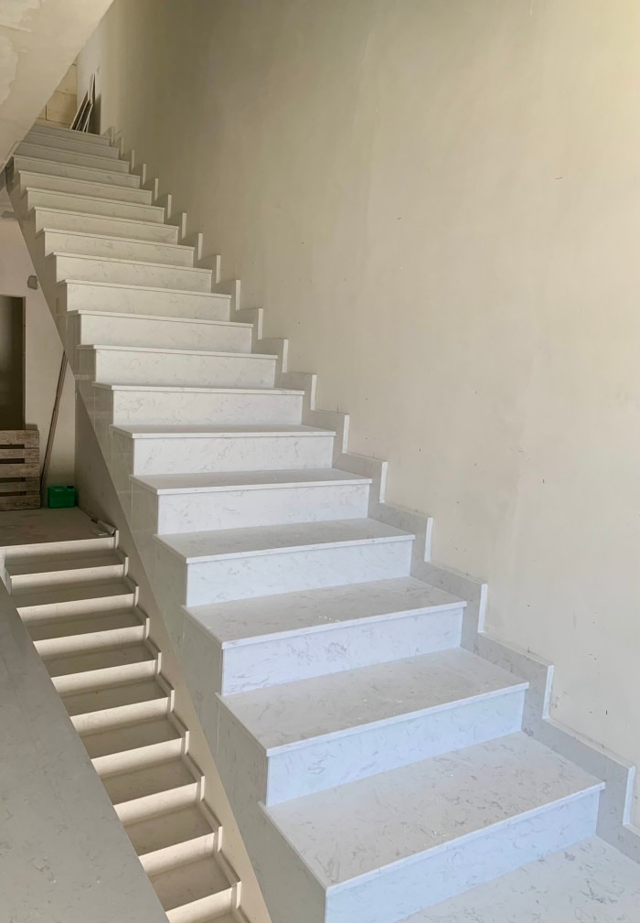 Staircase in Nero Assoluto Granite, Rizers in Super Ariston Synthetic Marble