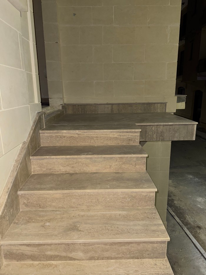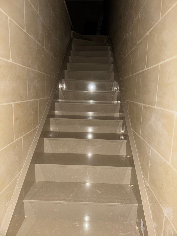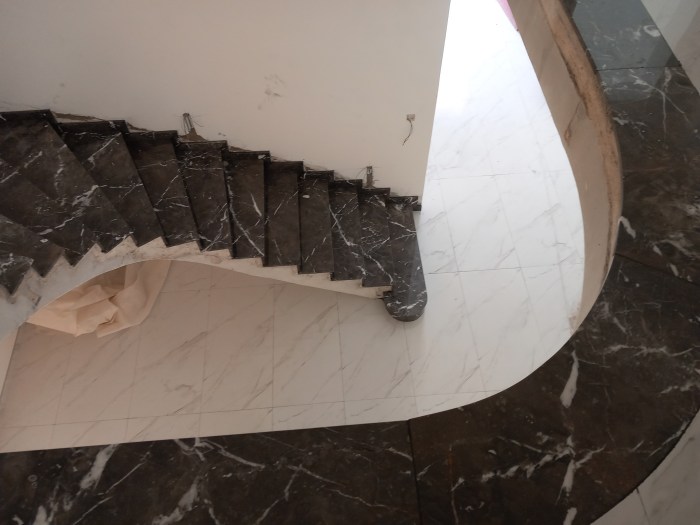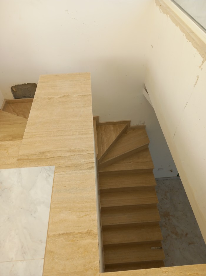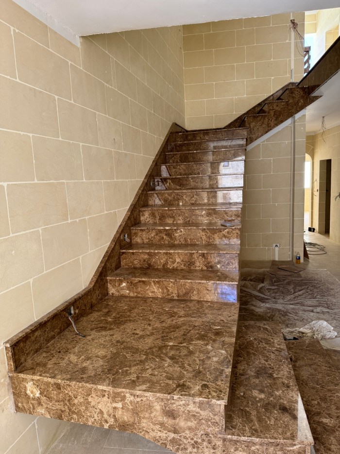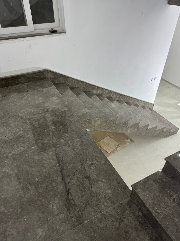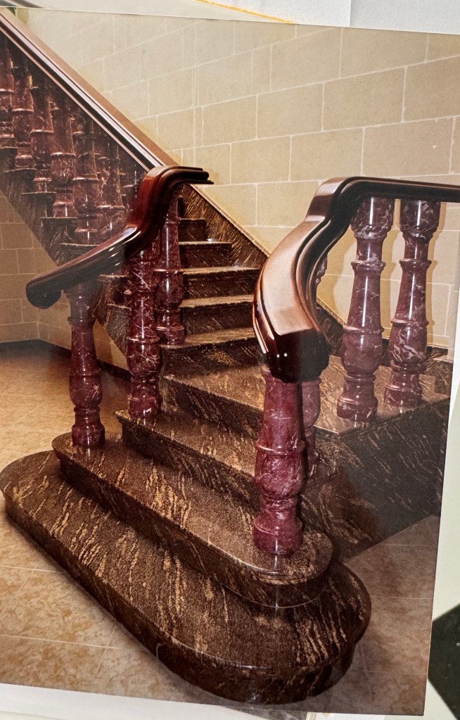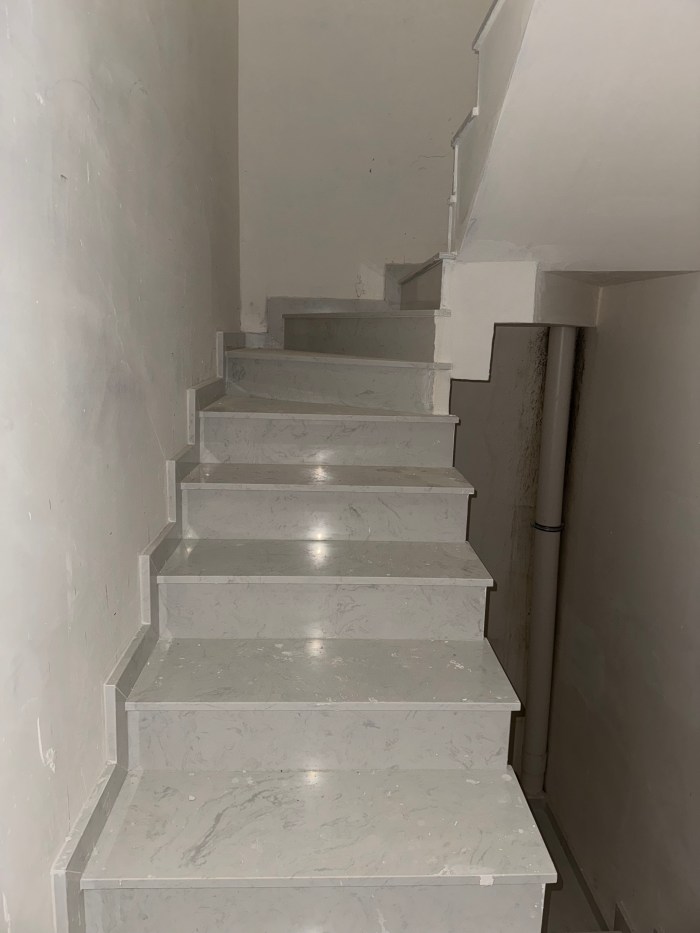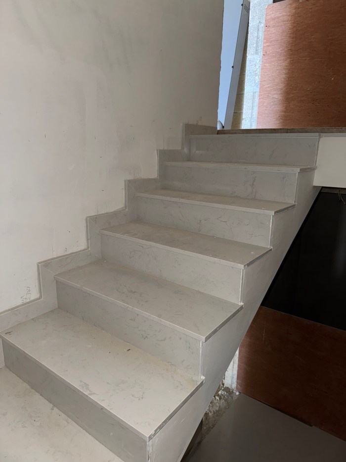 Staircase in Nero Assoluto Granite, Rizers in Super Ariston Synthetic Marble