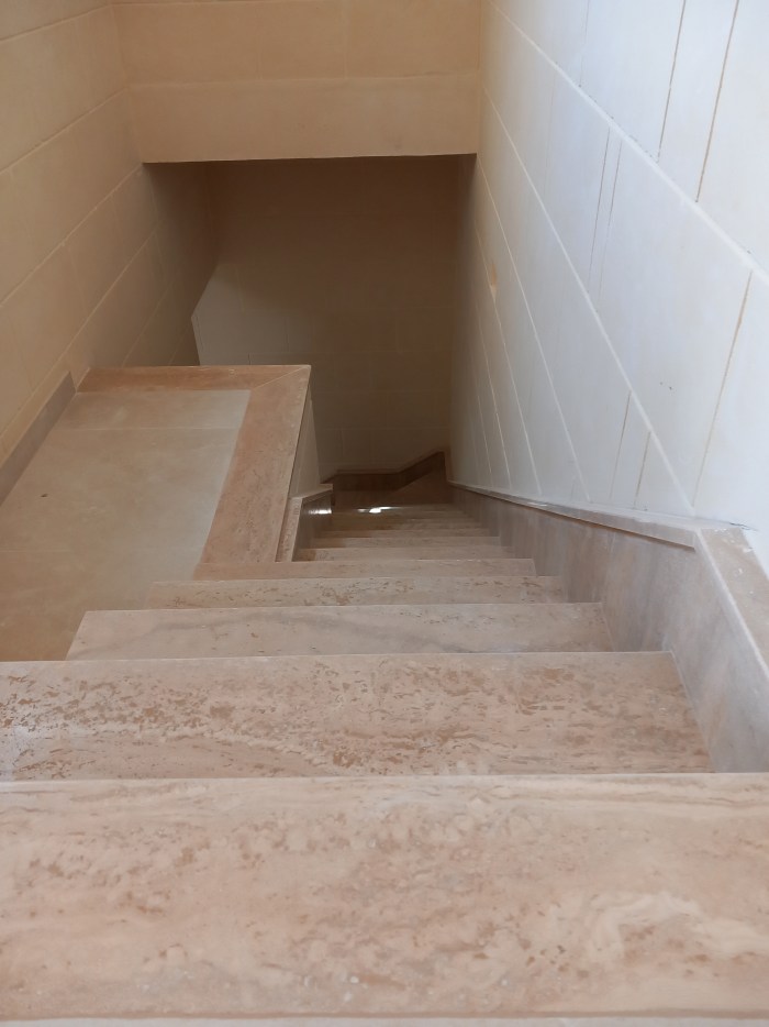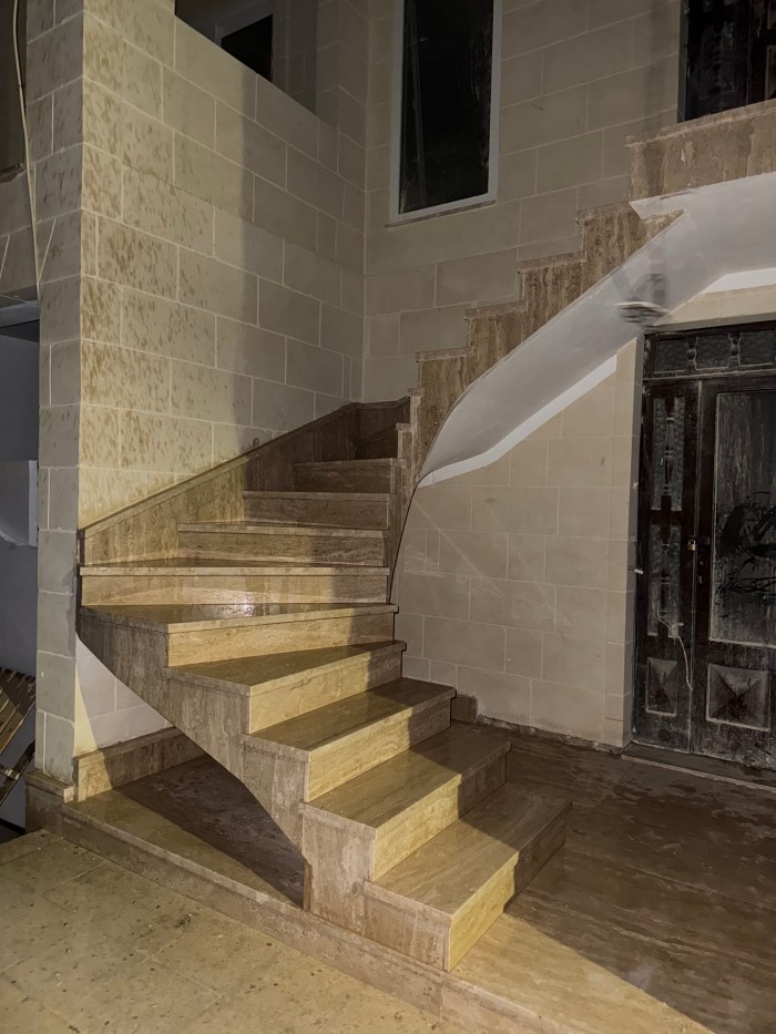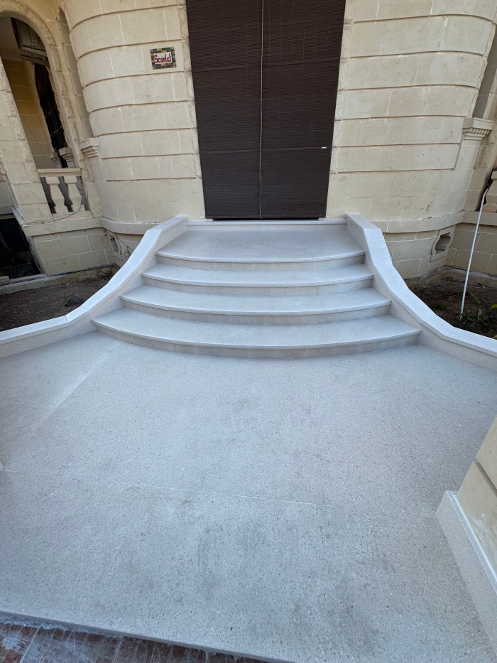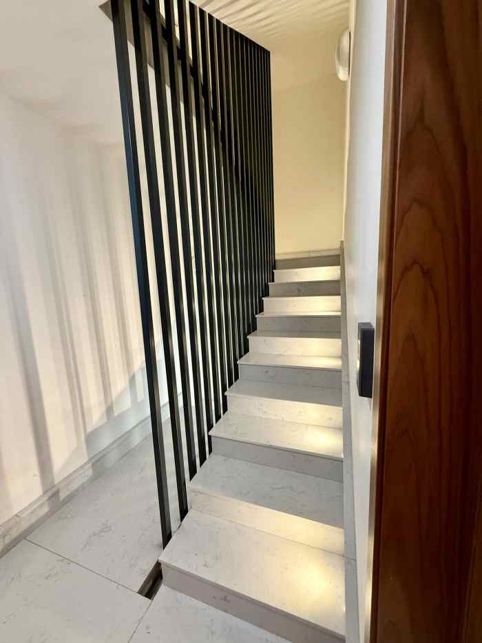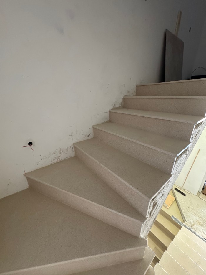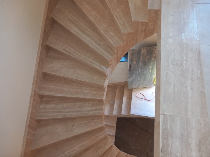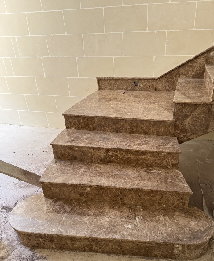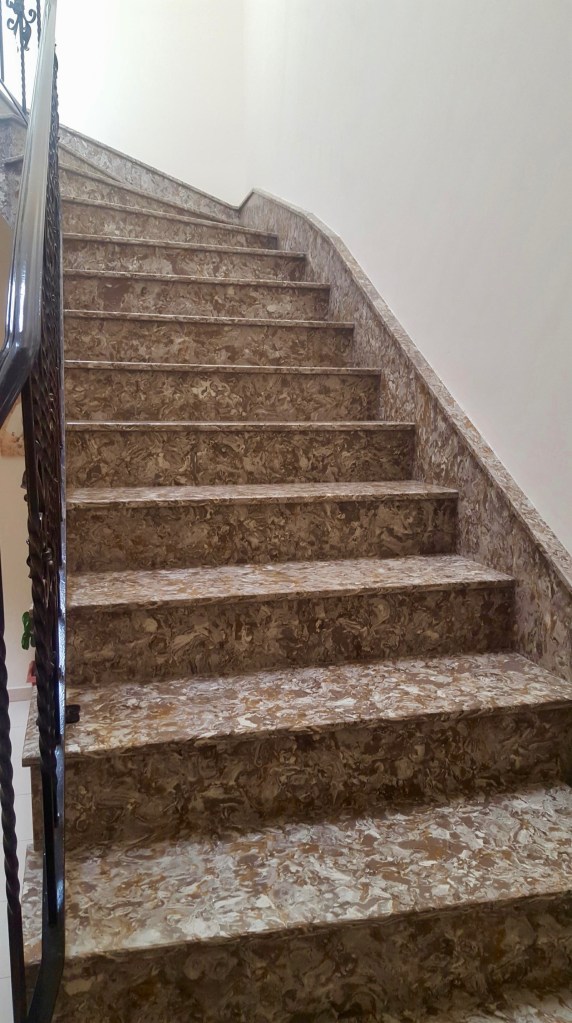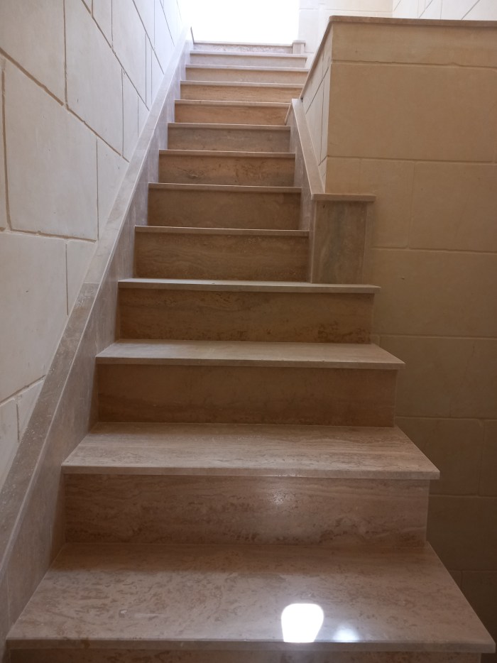 Staircase in Nero Assoluto Granite, Rizers in Super Ariston Synthetic Marble