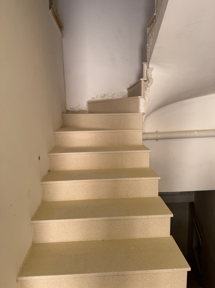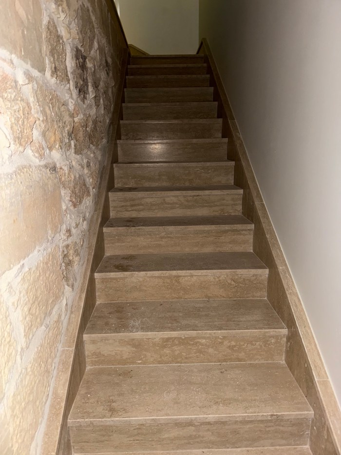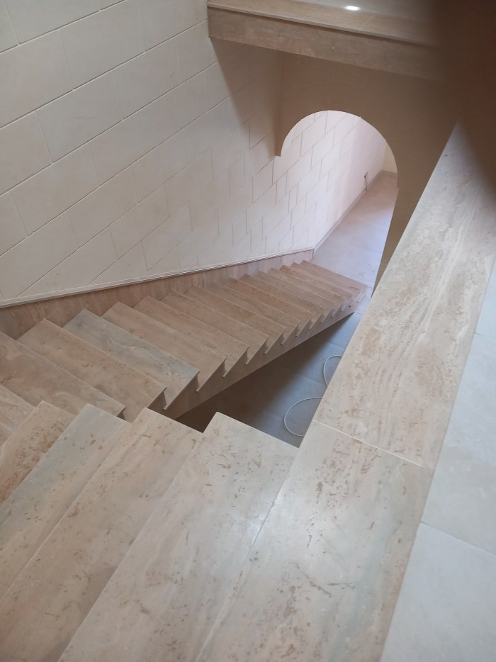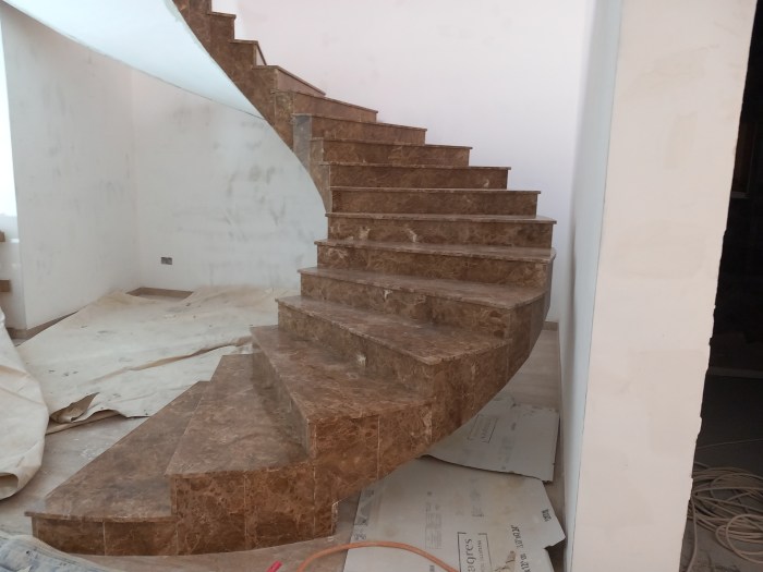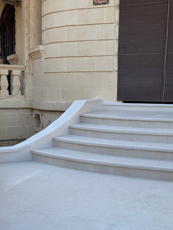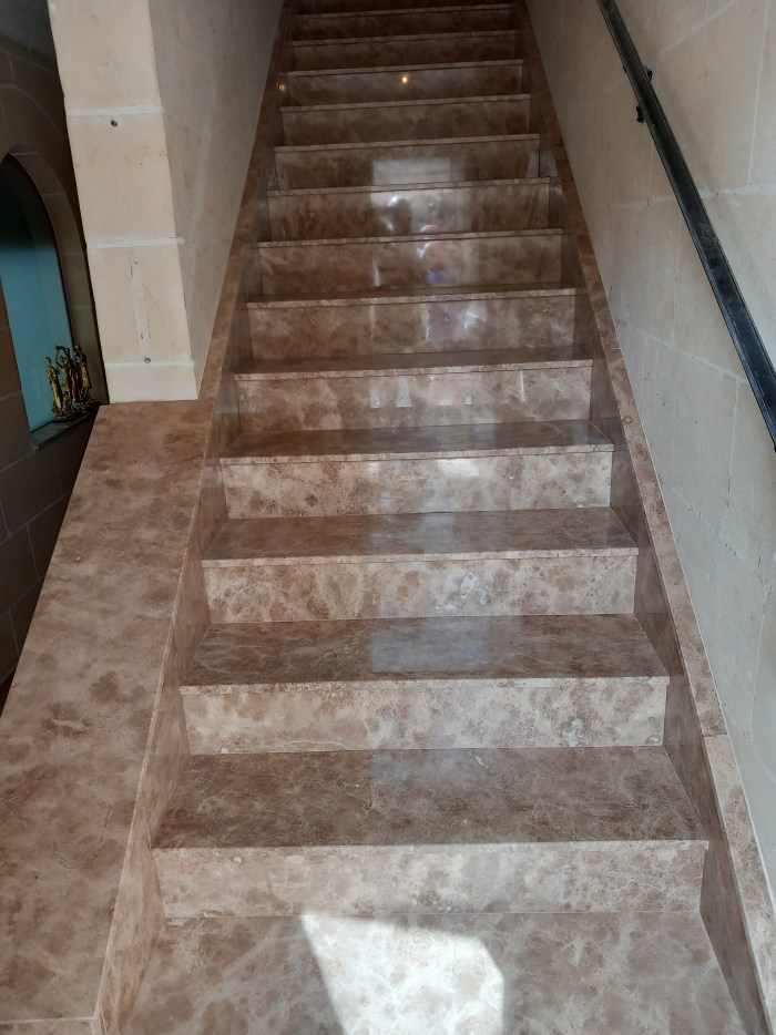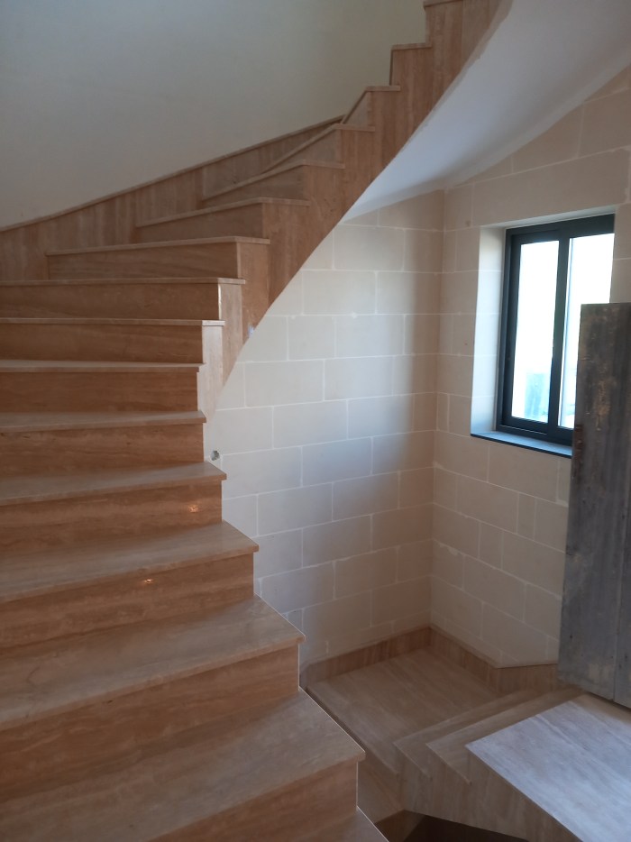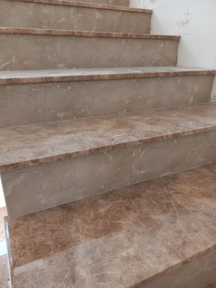 Staircase in Nero Assoluto Granite, Rizers in Super Ariston Synthetic Marble