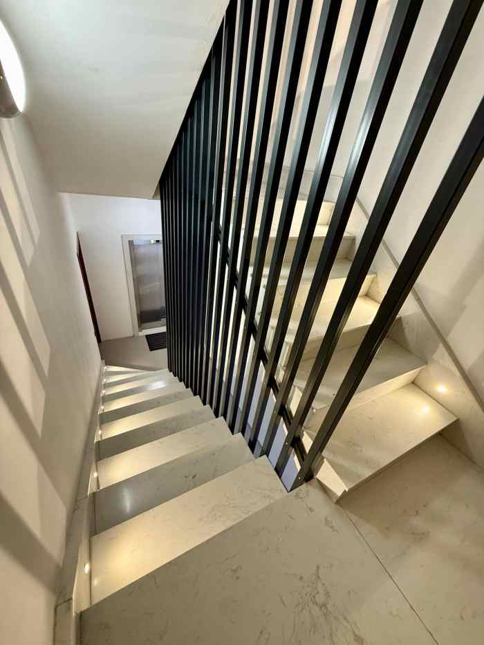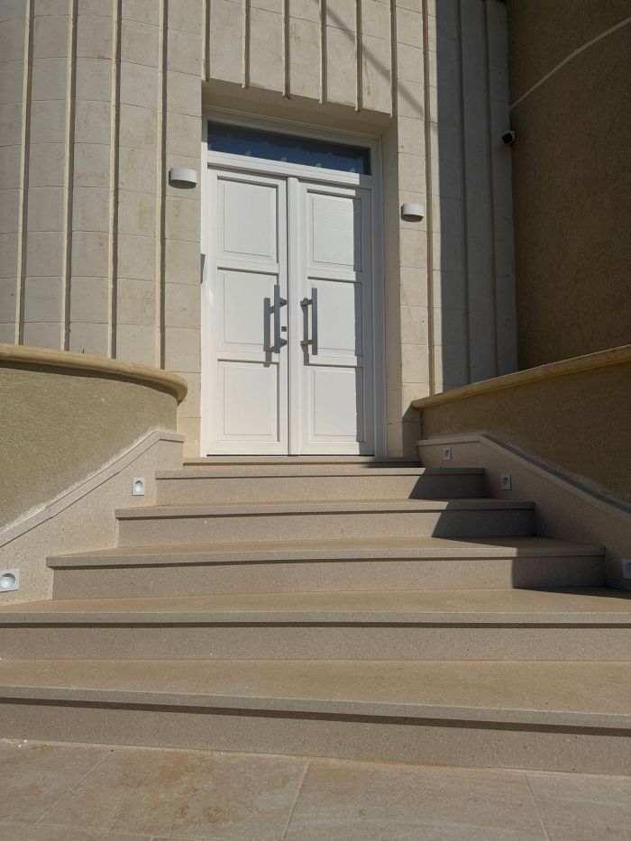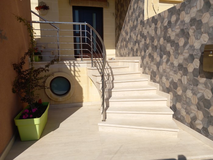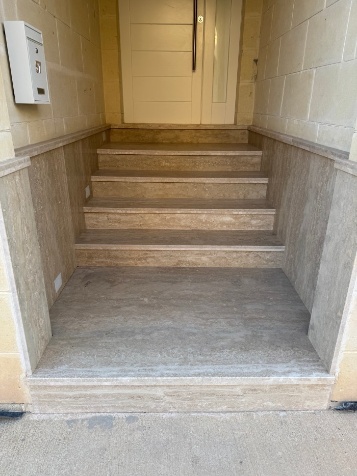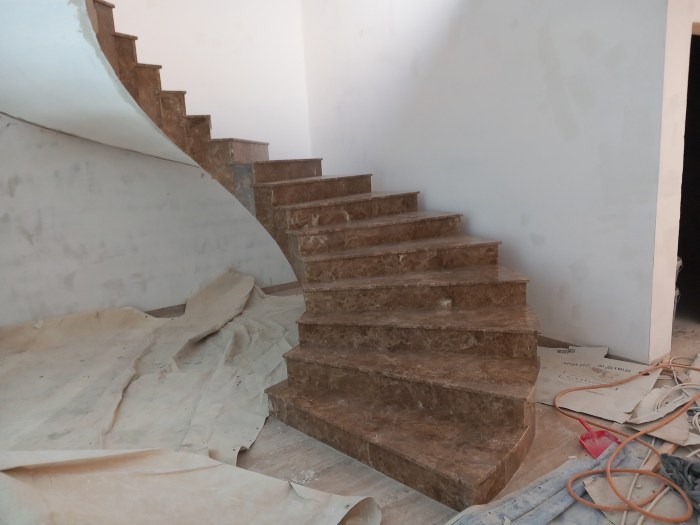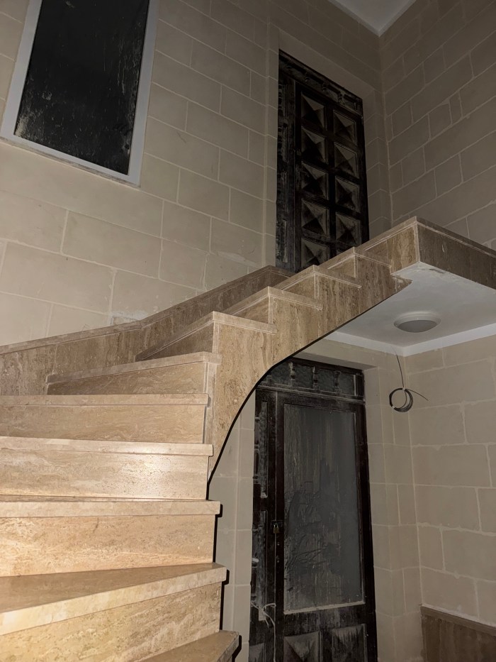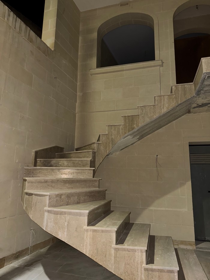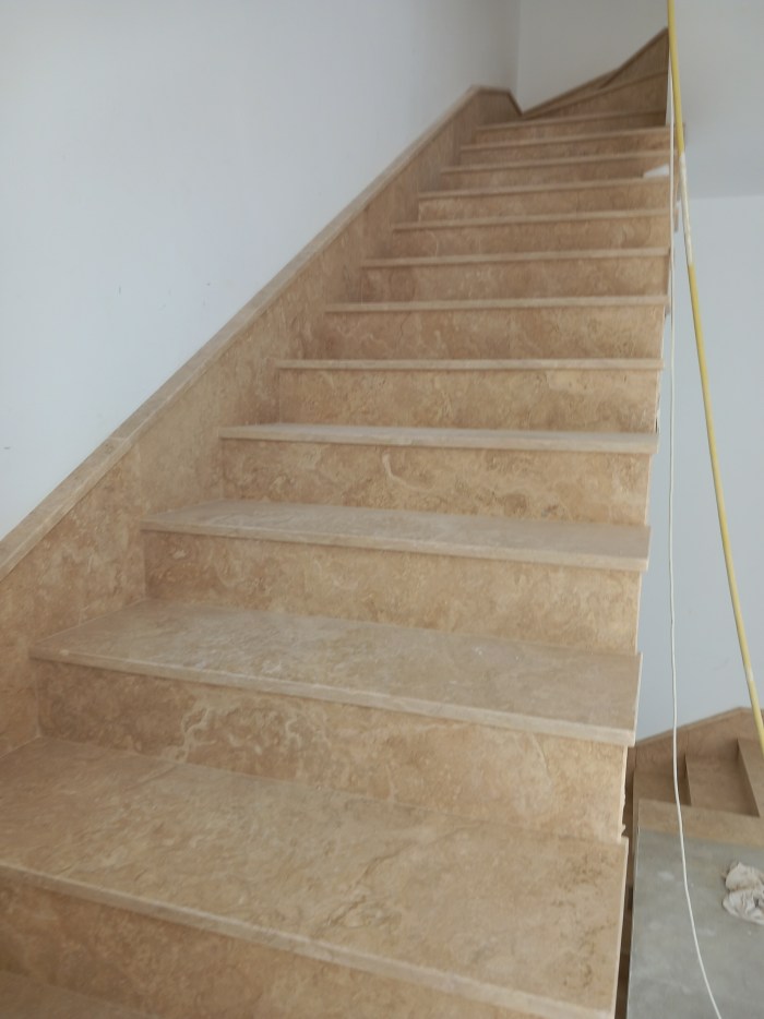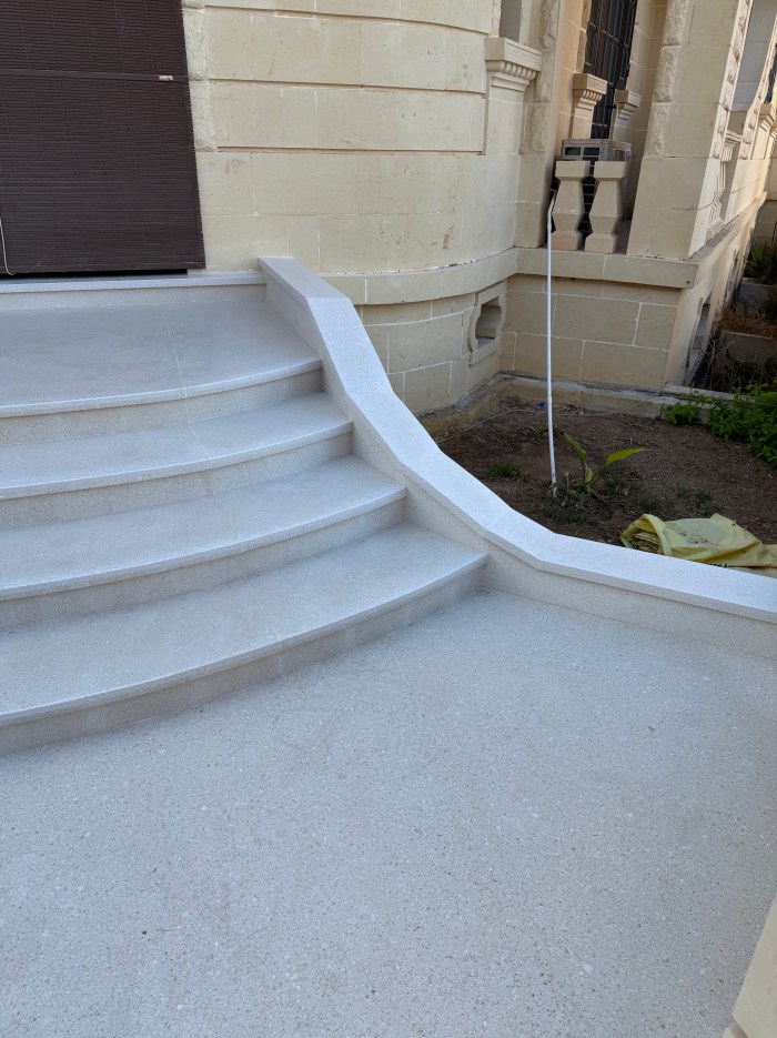 Staircase in Nero Assoluto Granite, Rizers in Super Ariston Synthetic Marble